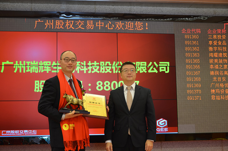 (熱烈祝賀)瑞輝生物成功掛牌廣州股權(quán)交易中心