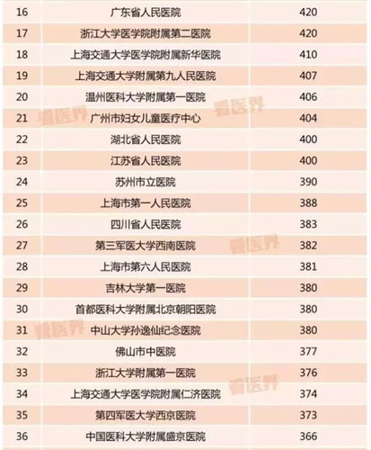 2017,中國(guó)大醫(yī)院門(mén)診量百?gòu)?qiáng)榜